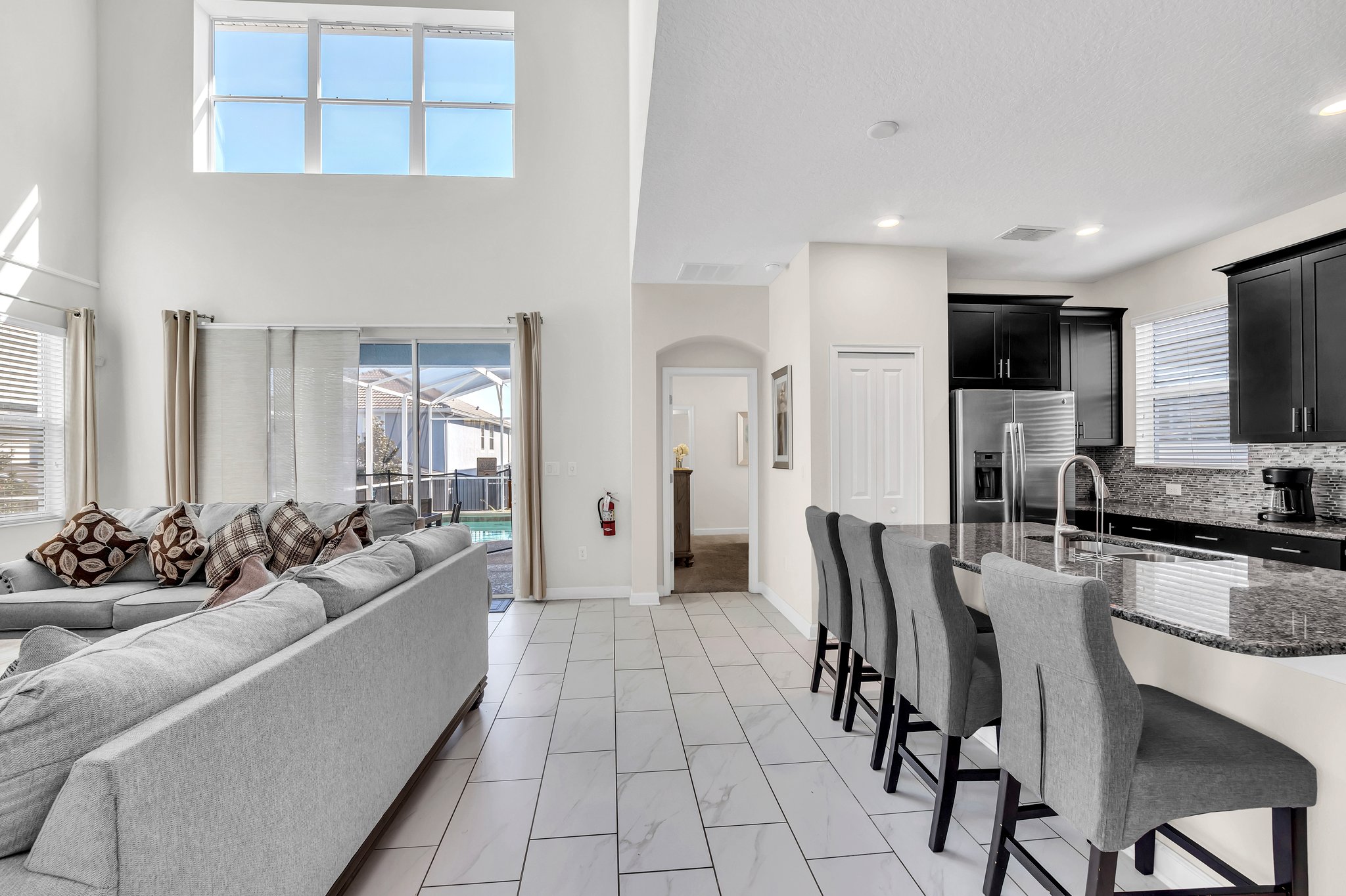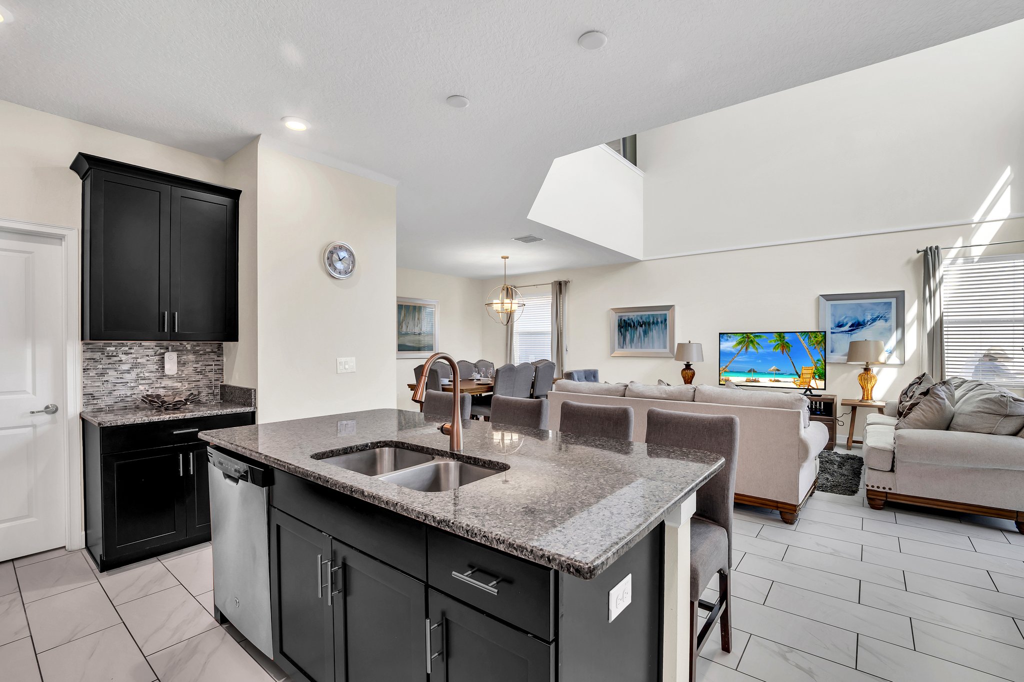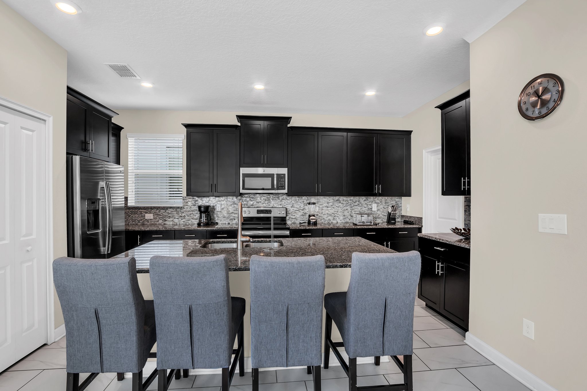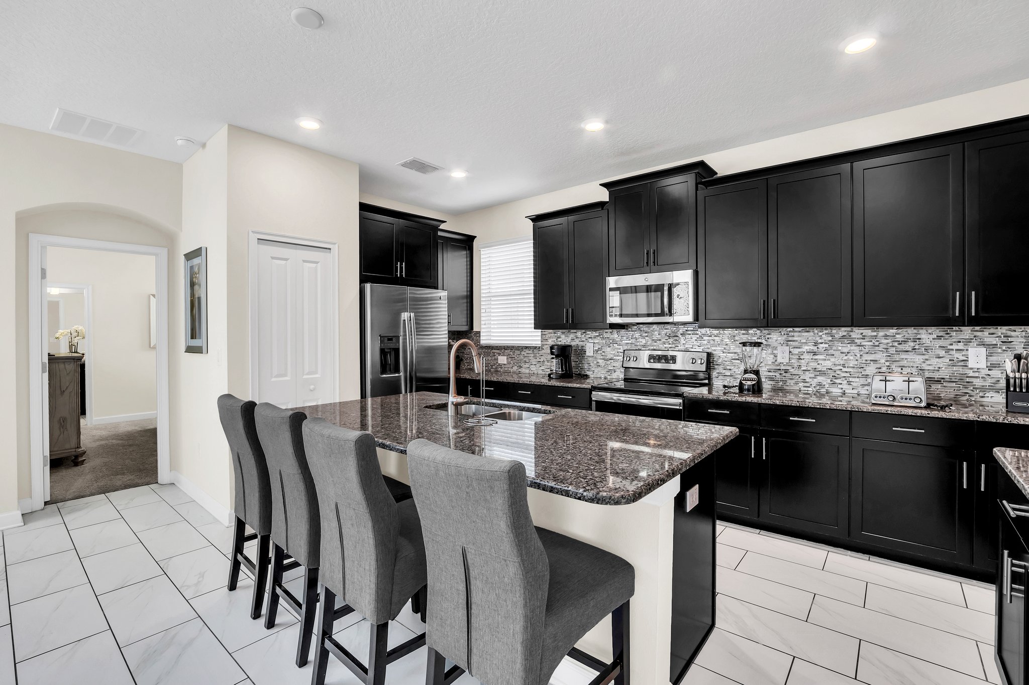 - Fully Equipped Kitchen with Granite Counters and Stainless Steel Appliances