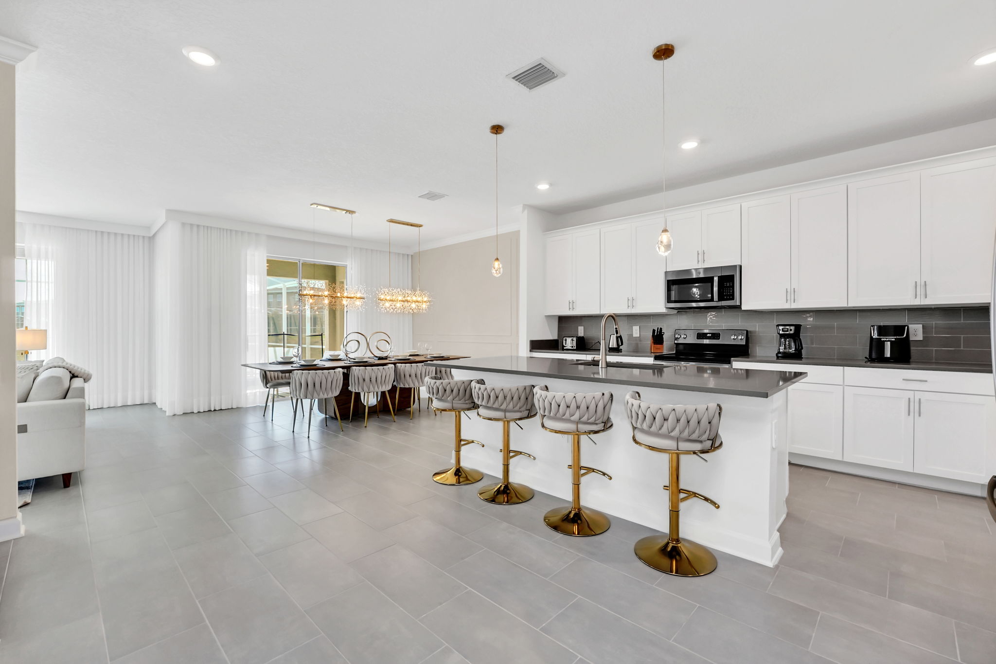 Welcome to your dream vacation home! This gorgeous luxury villa offers 6 bedrooms and 5 baths, making it perfect for large families or groups of up to 12 people. Enjoy the fully equipped kitchen with granite counters and stainless steel appliances for all your cooking needs.