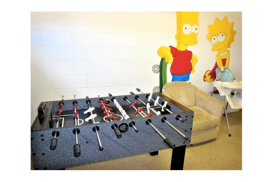 The home is equipped with all of the comforts of home including a full kitchen with all utensils, pots, pans guests could need. There are multiple dining areas including an outdoor dining table for a poolside meal.  With this many guests in the home we had to be sure there would be plenty to keep everyone entertained. There is a lively games room complete with Xbox, pool table, and foosball table you can enjoy while taking pictures with the custom Simpsons murals.