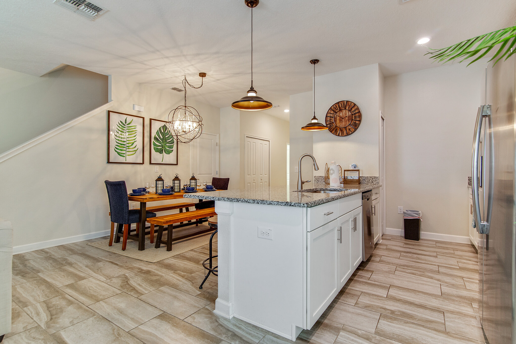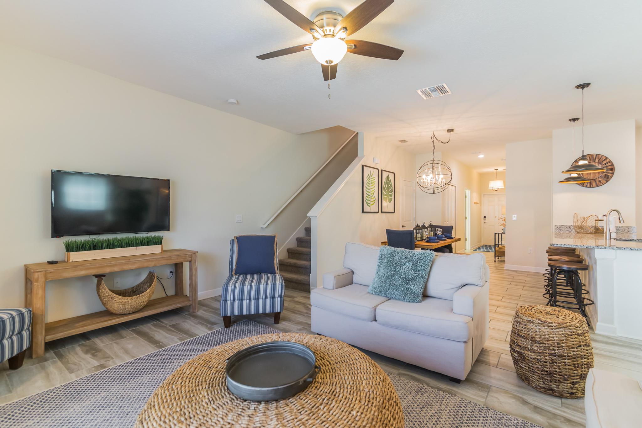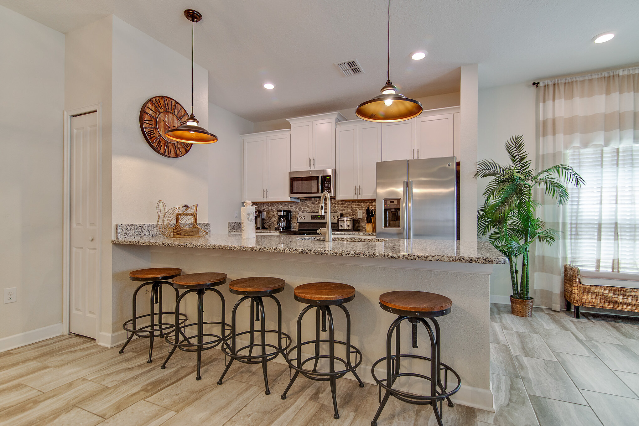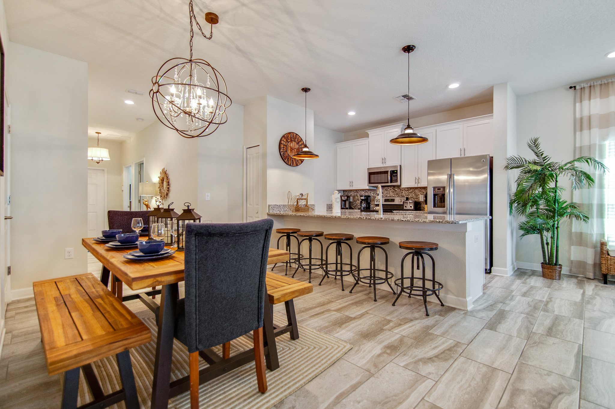 FS383834 - The Retreat at Champions Gate - 4 Bed 3 Baths Townhouse:During your stay, you will enjoy this well-appointed home that has been designed and decorated to provide you and your family an abundance of luxury amenities and leaves you well equipped to vacation with all the usual items you would expect to find at home.This spacious 4 bedroom holiday town home can comfortably accommodate a larger family or group of up to 8 people. Home Features- 4 Bedrooms 3 Baths Fully Equipped Kitchen with Granite Counters and Stainless Steel Appliances Private Screened Pool With Lanai Patio with Outdoor Furniture and Spacious Deck Upstairs Loft Full-Size Washer/Dryer Dishwasher Central Air Towels and Bed Linens Wireless Internet Telephone with FREE Local Calls Flat Screen Cable TV in Living Room and All Bedrooms North Facing PoolMain Features:* 4 bedroom / 3 bathroom – Sleeps up to 10* 1600 sqft townhome* Private Pool with child safe fence* Free Wifi, Free long distance calling to anywhere in the US, Canada, and Mexico* Fully equipped kitchen, washer and dryer, towels and linens are all included* Your own private living space with HDTVNote: Pool/Spa heating is optional. Grill and Baby Gears are available for rent upon request.The Retreat at Champions Gate:The Retreat at Champions Gate is a beautiful Vacation Resort located just 8 miles to Walt Disney World and 18 miles to Universal Studios of Orlando. This feature packed Gated Community Vacation Resort offers many amenities that will help make your dream Orlando vacation come true! Some popular amenities include the Swimming Pool, Water Slide, Spa, Steam Room, and Fitness Center. The Retreat at Champions Gate is located about 30 minutes away from the Orlando International Airport, and 20 minutes away from the Amtrak station. Looking for food? There is a long list of restaurants located just nearby, some of which includes Olive Garden, Charlie's Steakhouse, Outback Steakhouse, Bonefish Grill, and Bahama Breeze. Food delivery services such as Uber Eats are also readily available. If you are looking for more than just the theme parks, there are also other activities such as shopping, hiking, fishing, horseback riding, and water sports. Sweet Home Vacation:We are a professional Vacation Home Rental Agency with over 12 years of experience In the Orlando, Florida area. Your safety and comfort Is our top priority, and all of our homes are cleaned with enhanced safety and cleaning methods. No check-In is required as you may go directly to the home with the provided access code. If you have any questions, our reservation team at Sweet Home Vacation is available to help you 7 days a week. We can also help you locate car rentals and tickets for Orlando's famous attractions. Whether this is your first time, or you are a returning guest, we will make sure you have an amazing trip. Book now or send us your inquiry. We are looking forward to accommodating you!
