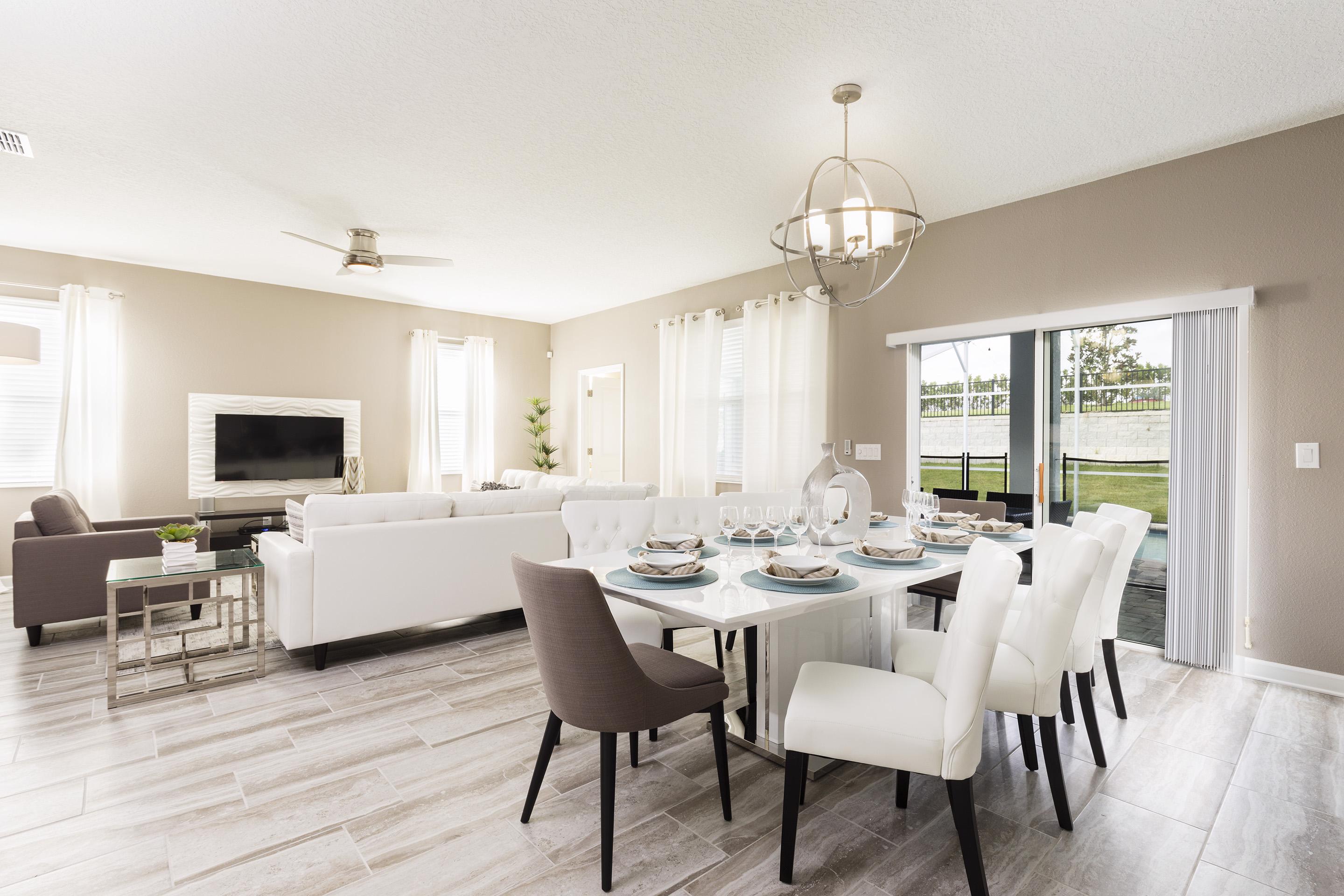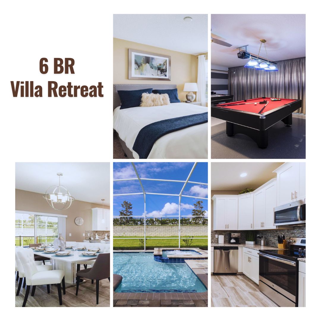 FS383808 - The Retreat at Champions Gate - 6 Bed 6 Baths Pool Villa:During your stay, you will enjoy this well-appointed home that has been designed and decorated to provide you and your family an abundance of luxury amenities and leaves you well equipped to vacation with all the usual items you would expect to find at home.This spacious 6 bedroom holiday villa can comfortably accommodate a larger family or group of up to 12 people. Home Features- 6 Bedrooms 6 Baths Fully Equipped Kitchen with Granite Counters and Stainless Steel Appliances Private Screened Pool With Lanai Spa-this is not a hot tub-the spa is only heated to the temperature of the pool if pool heat is added Patio with Outdoor Furniture and Spacious Deck Game Room with Pool Table and Air Hockey Full-Size Washer/Dryer Dishwasher Central Air Towels and Bed Linens Wireless Internet Telephone with FREE Local Calls Flat Screen Cable TV in Living Room, Loft, and All Bedrooms South Facing PoolSleeping Arrangements:1-King 1-Queen 1-Queen 1-Queen 1-Queen 2-TwinsMain Features:* 6 bedroom / 6 bathroom – Sleeps up to 12* 2500 sqft villa* Private Pool with child safe fence* Hot Tub for relaxation after a long day* Free Wifi, Free long distance calling to anywhere in the US, Canada, and Mexico* Fully equipped kitchen, washer and dryer, towels and linens are all included* Your own private living space with HDTV* Games room to entertain everyone from all agesNote: Pool/Spa heating is optional. Grill and Baby Gears are available for rent upon request.The Retreat at Champions Gate:The Retreat at Champions Gate is a beautiful Vacation Resort located just 8 miles to Walt Disney World and 18 miles to Universal Studios of Orlando. This feature packed Gated Community Vacation Resort offers many amenities that will help make your dream Orlando vacation come true! Some popular amenities include the Swimming Pool, Water Slide, Spa, Steam Room, and Fitness Center. The Retreat at Champions Gate is located about 30 minutes away from the Orlando International Airport, and 20 minutes away from the Amtrak station. Looking for food? There is a long list of restaurants located just nearby, some of which includes Olive Garden, Charlie's Steakhouse, Outback Steakhouse, Bonefish Grill, and Bahama Breeze. Food delivery services such as Uber Eats are also readily available. If you are looking for more than just the theme parks, there are also other activities such as shopping, hiking, fishing, horseback riding, and water sports. Sweet Home Vacation:We are a professional Vacation Home Rental Agency with over 12 years of experience In the Orlando, Florida area. Your safety and comfort Is our top priority, and all of our homes are cleaned with enhanced safety and cleaning methods. No check-In is required as you may go directly to the home with the provided access code. If you have any questions, our reservation team at Sweet Home Vacation is available to help you 7 days a week. We can also help you locate car rentals and tickets for Orlando's famous attractions. Whether this is your first time, or you are a returning guest, we will make sure you have an amazing trip. Book now or send us your inquiry. We are looking forward to accommodating you!