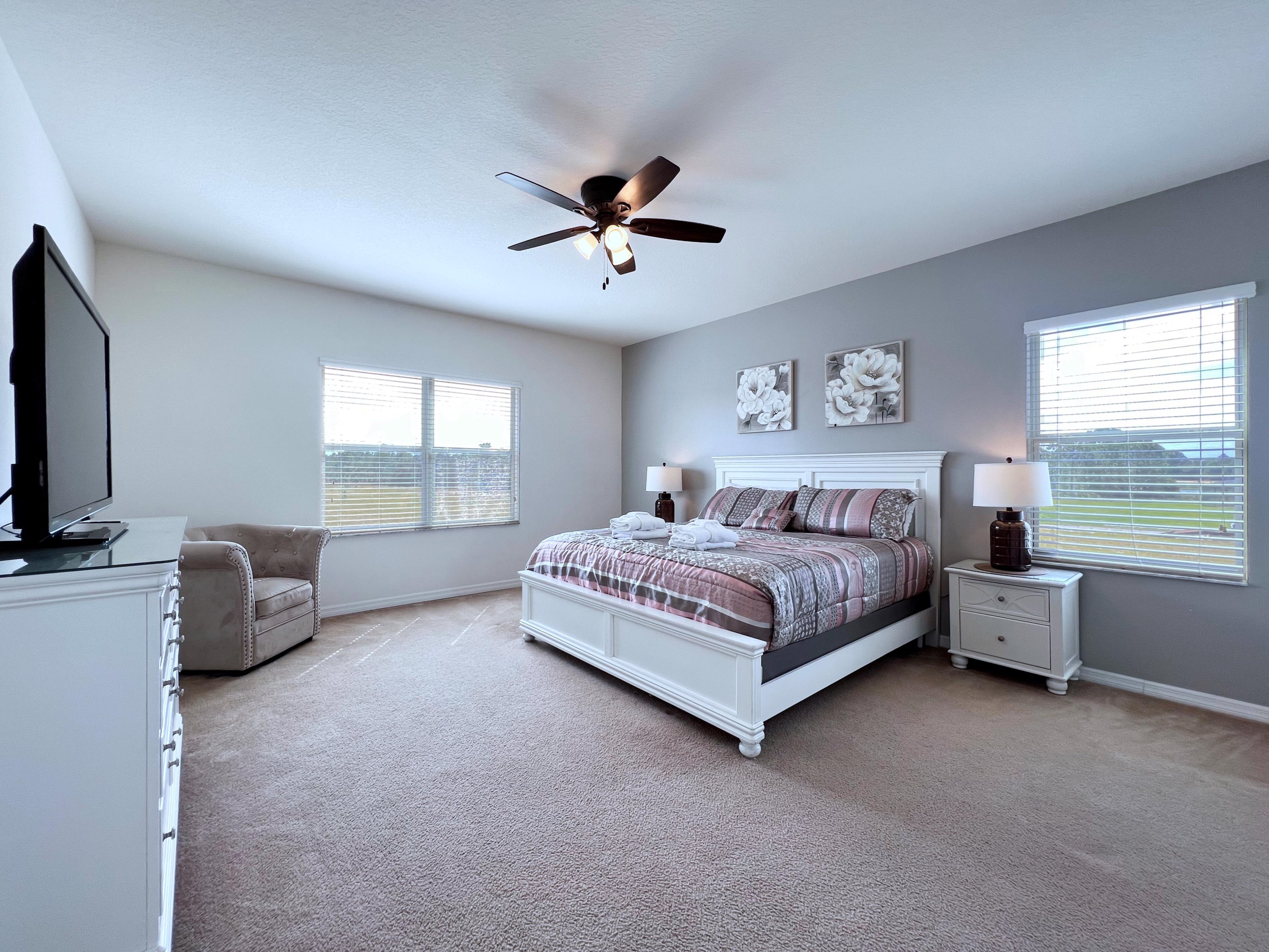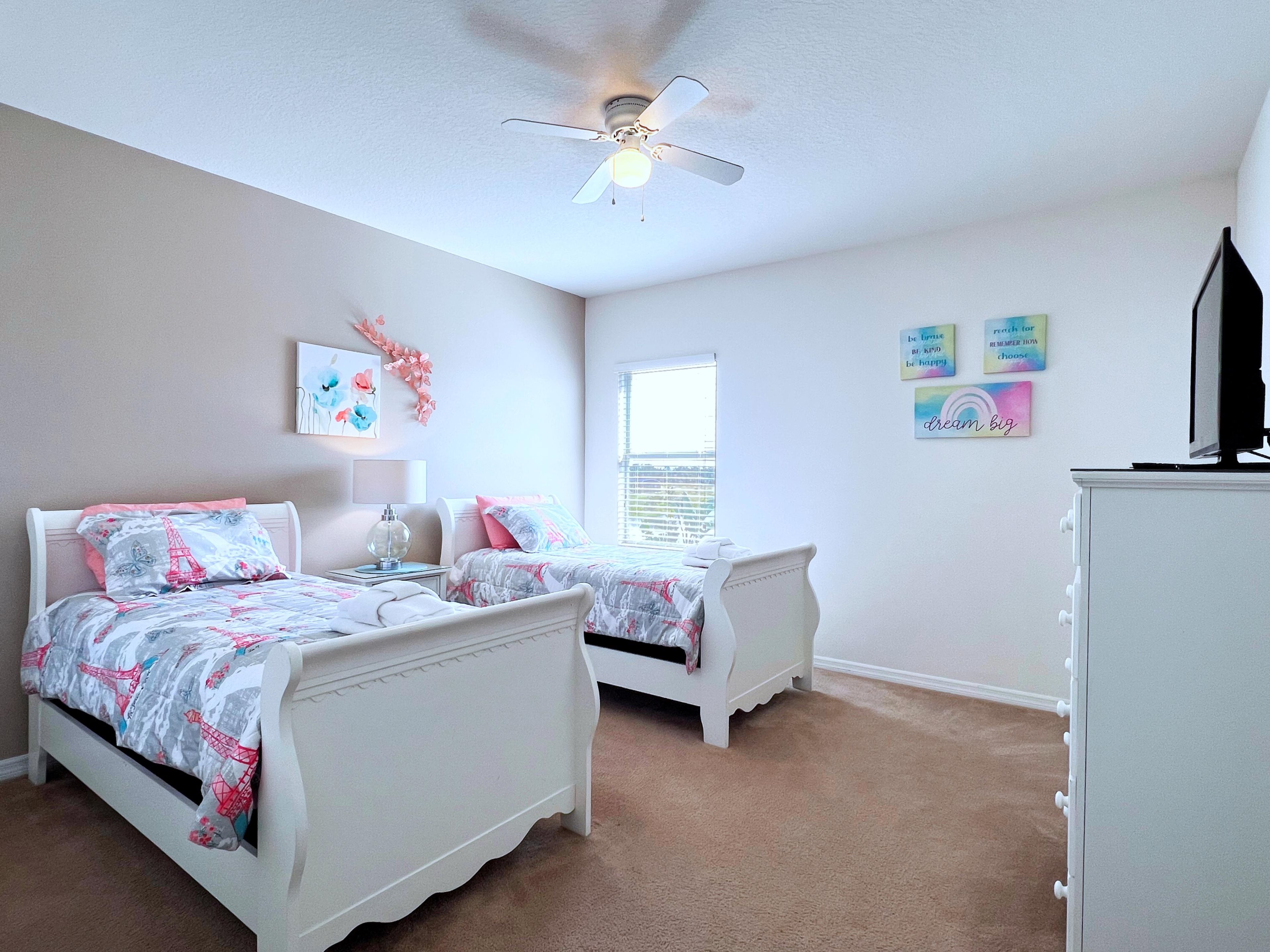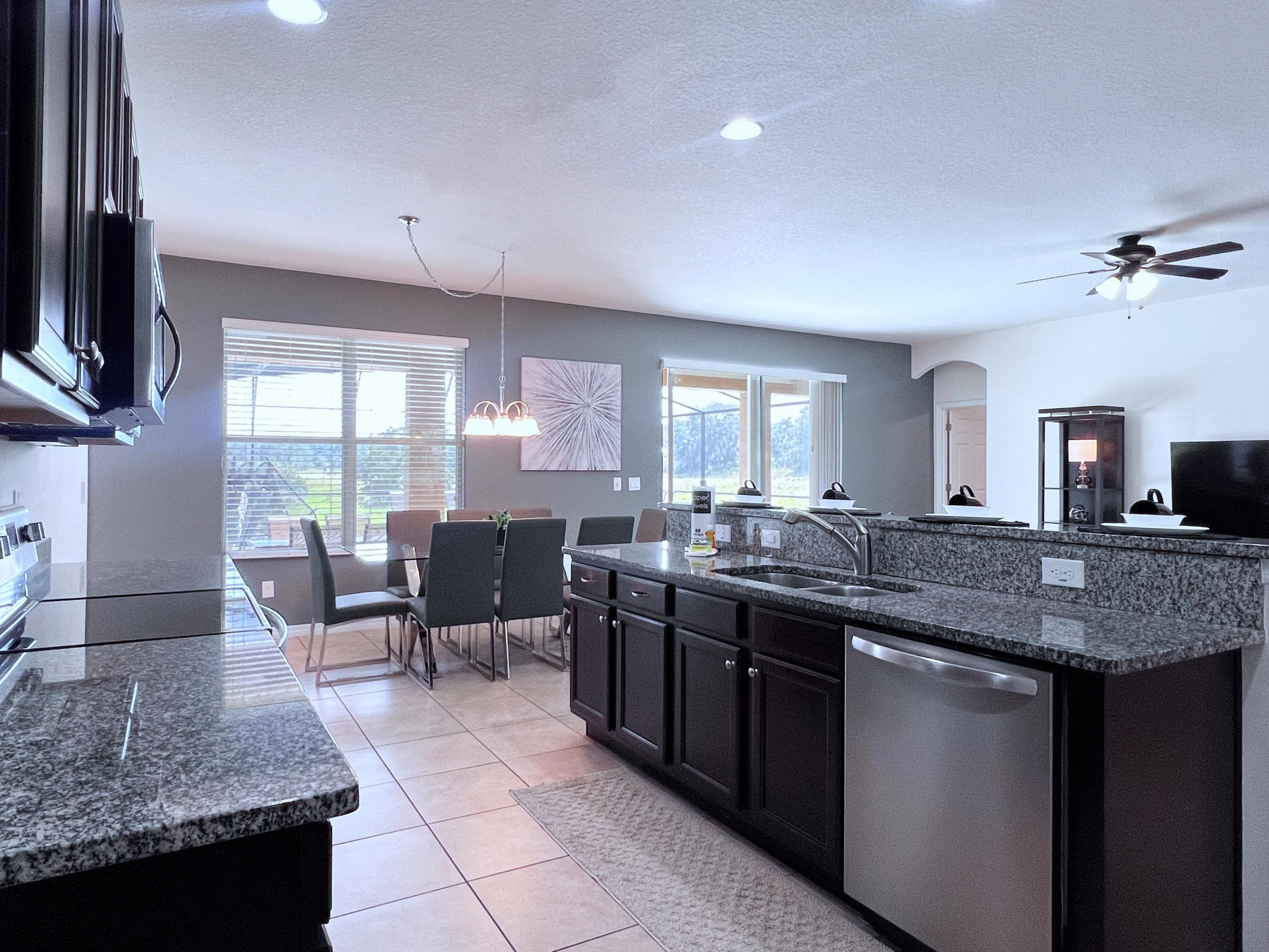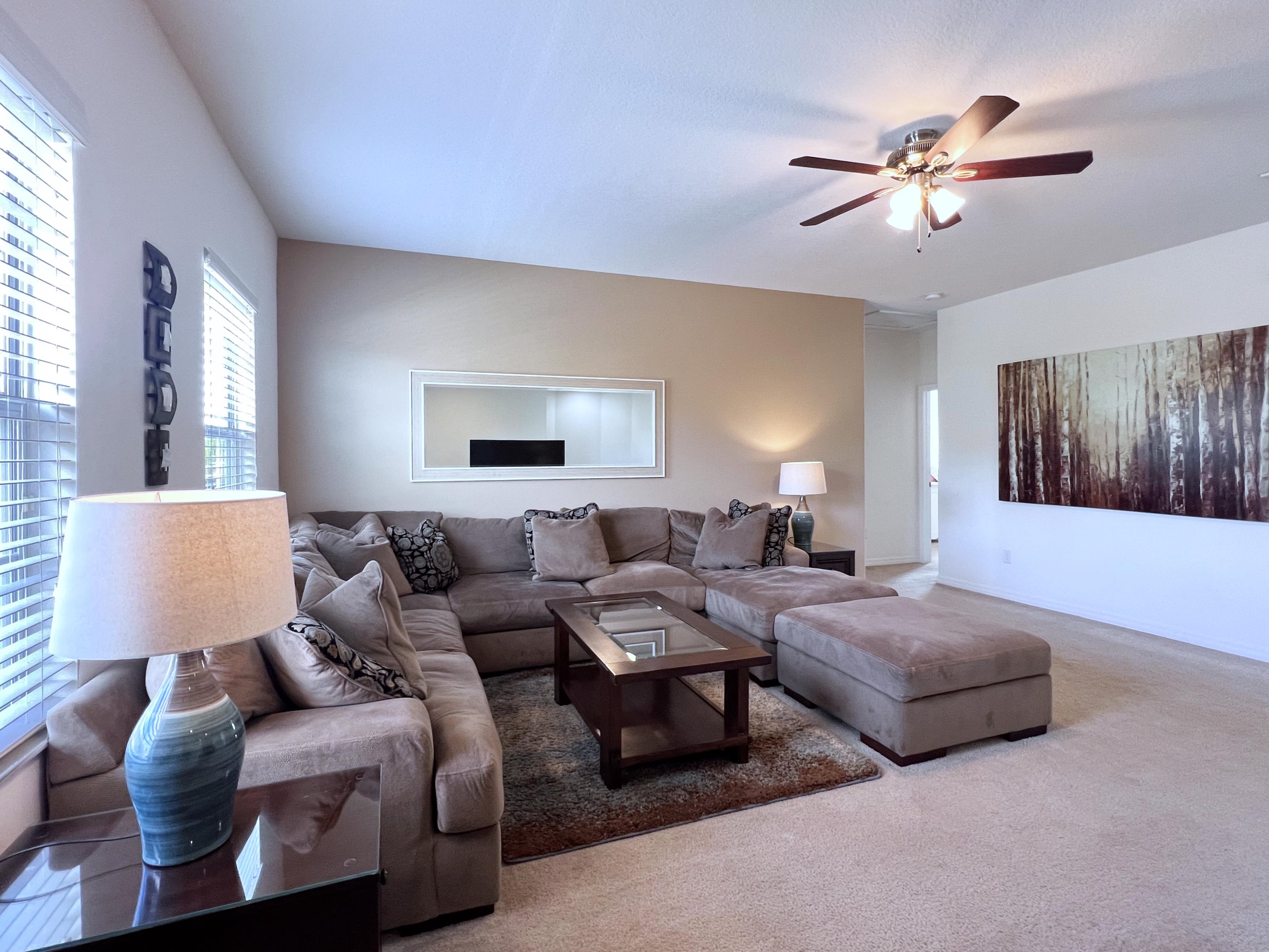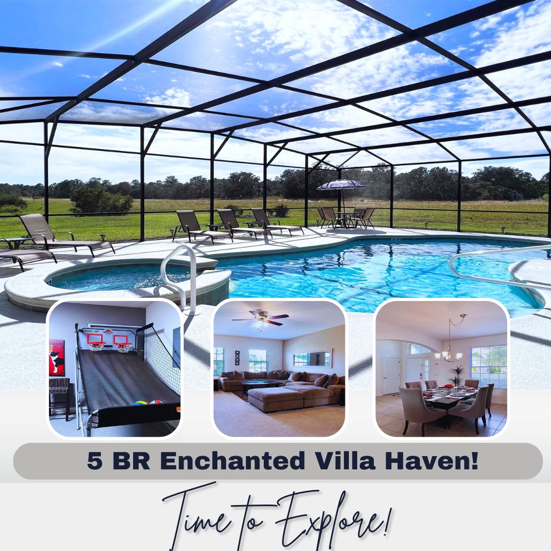 FS384051- Watersong - 5 Bed 4.5 Baths Villa:During your stay, you will enjoy this well-appointed home that has been designed and decorated to provide you and your family an abundance of luxury amenities and leaves you well equipped to vacation with all the usual items you would expect to find at home.This spacious 5 bedroom holiday villa can comfortably accommodate a larger family or group of up to 10 people. Home Features- 5 Bedrooms 4.5 Baths Fully Equipped Kitchen Private Screened Pool With Lanai Patio with Outdoor Furniture and Spacious Deck Spa-this not a hot tub, spa is only heated to the same temperature as the pool if pool heat is added Game Room with Pool Table, Basketball Hoop Game, and Foosball Full-Size Washer/Dryer Dishwasher Central Air Ceiling Fans in All rooms Towels and Bed Linens Internet Access with WIFI 50" Flat Screen TV in Living Room TVs in Loft and all Bedrooms 3 Ensuites 3367 Square Feet Pool Direction SouthSleeping Arrangements:1-King (Downstairs, Master Ensuite) 1-King (Upstairs, Master Ensuite) 1-Queen (Upstairs Ensuite) 2-Twins (Upstairs) 2-Twins (Upstairs)Main Features:* 5 bedroom / 4.5 bathroom – Sleeps up to 10* 3367 sqft villa* Private Pool with child safe fence* Hot Tub for relaxation after a long day* Free Wifi, Free long distance calling to anywhere in the US, Canada, and Mexico* Fully equipped kitchen, washer and dryer, towels and linens are all included* Your own private living space with HDTV* Games room to entertain everyone from all agesNote: Pool/Spa heating is optional. Grill and Baby Gears are available for rent upon request.Watersong:Watersong is a beautiful Vacation Resort located just 9 miles to Walt Disney World and 18 miles to Universal Studios of Orlando. This feature packed Gated Community Vacation Resort offers many amenities that will help make your dream Orlando vacation come true! Some popular amenities include the Swimming Pool, Water Slide, Spa, Steam Room, and Fitness Center. Watersong is located about 30 minutes away from the Orlando International Airport, and 20 minutes away from the Amtrak station. Looking for food? There is a long list of restaurants located just nearby, some of which includes Olive Garden, Charlie's Steakhouse, Outback Steakhouse, Bonefish Grill, and Bahama Breeze. Food delivery services such as Uber Eats are also readily available. If you are looking for more than just the theme parks, there are also other activities such as shopping, hiking, fishing, horseback riding, and water sports. Sweet Home Vacation:We are a professional Vacation Home Rental Agency with over 12 years of experience In the Orlando, Florida area. Your safety and comfort Is our top priority, and all of our homes are cleaned with enhanced safety and cleaning methods. No check-In is required as you may go directly to the home with the provided access code. If you have any questions, our reservation team at Sweet Home Vacation is available to help you 7 days a week. We can also help you locate car rentals and tickets for Orlando's famous attractions. Whether this is your first time, or you are a returning guest, we will make sure you have an amazing trip. Book now or send us your inquiry. We are looking forward to accommodating you!